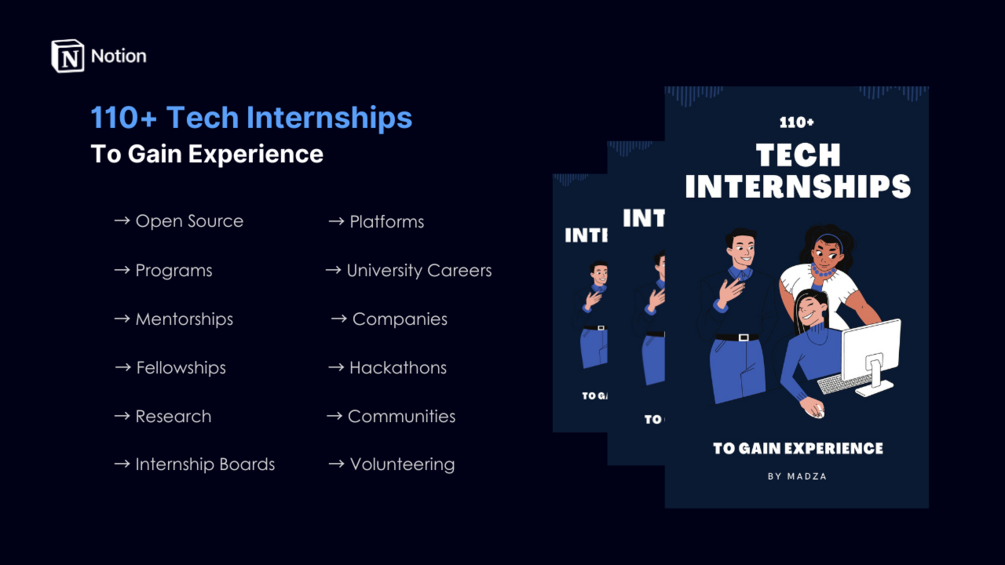 You'll get an access to a Notion database with 110+ handpicked tech internships.